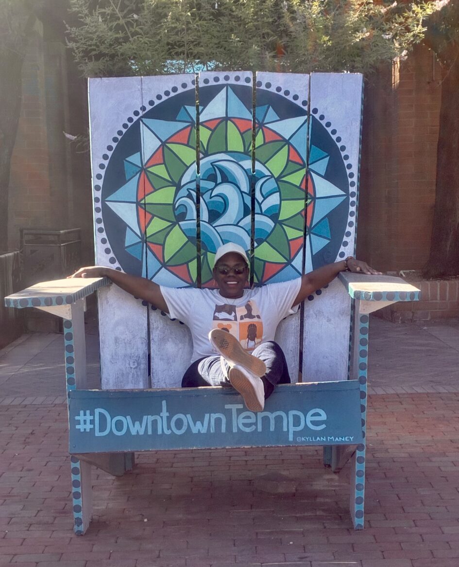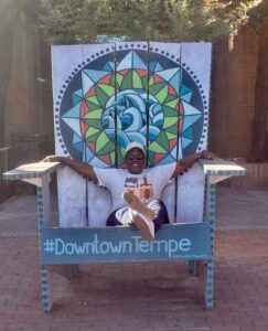 Let’s keep moving! So you passed the “brownie” store and you kept walking all the way down the street. You walked down one side of the street until the very end, and you crossed so that you can stroll up the other side on your way back to the car, or the Omni. Keep walking up Mill avenue and take a picture in the “Giant” chair!
